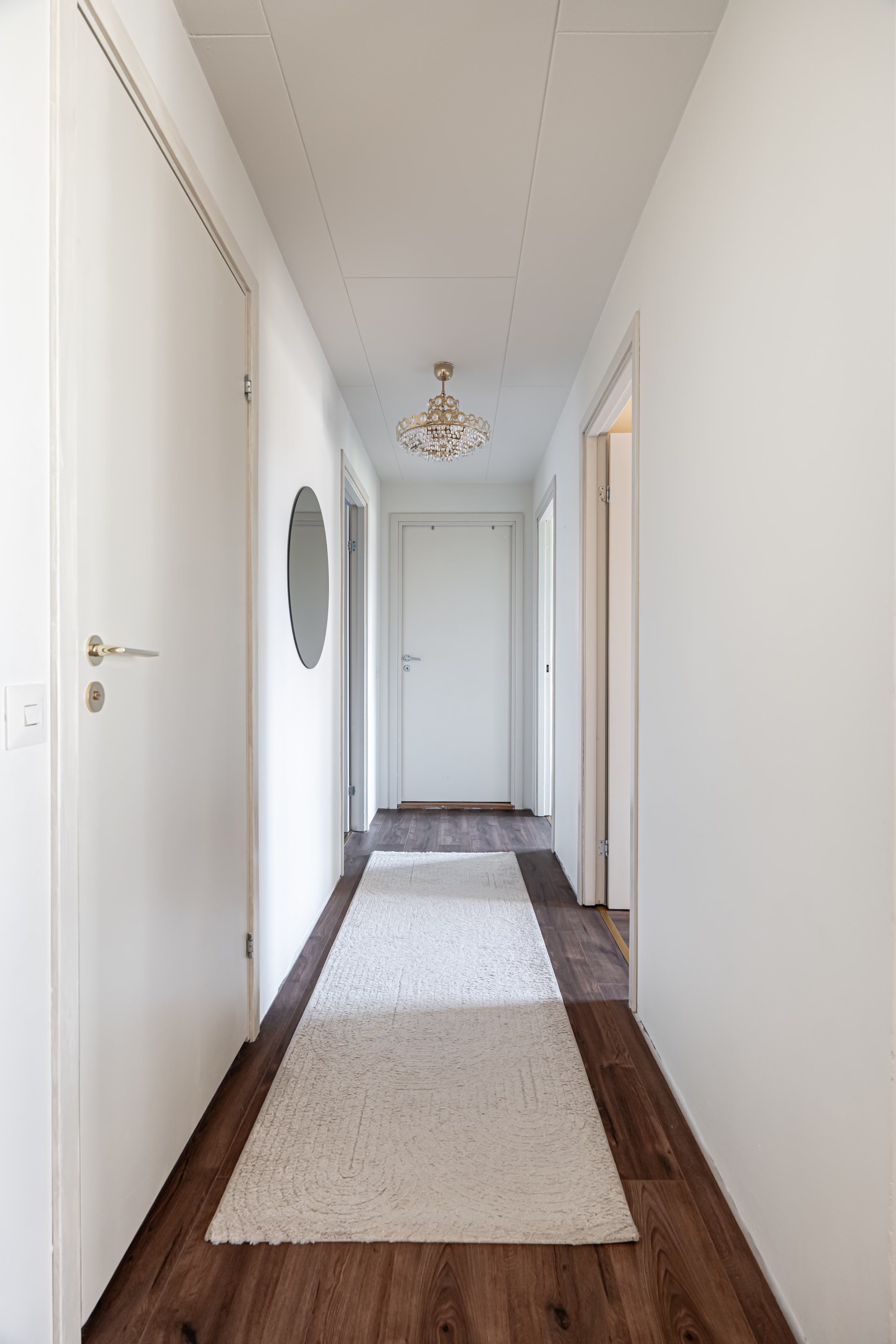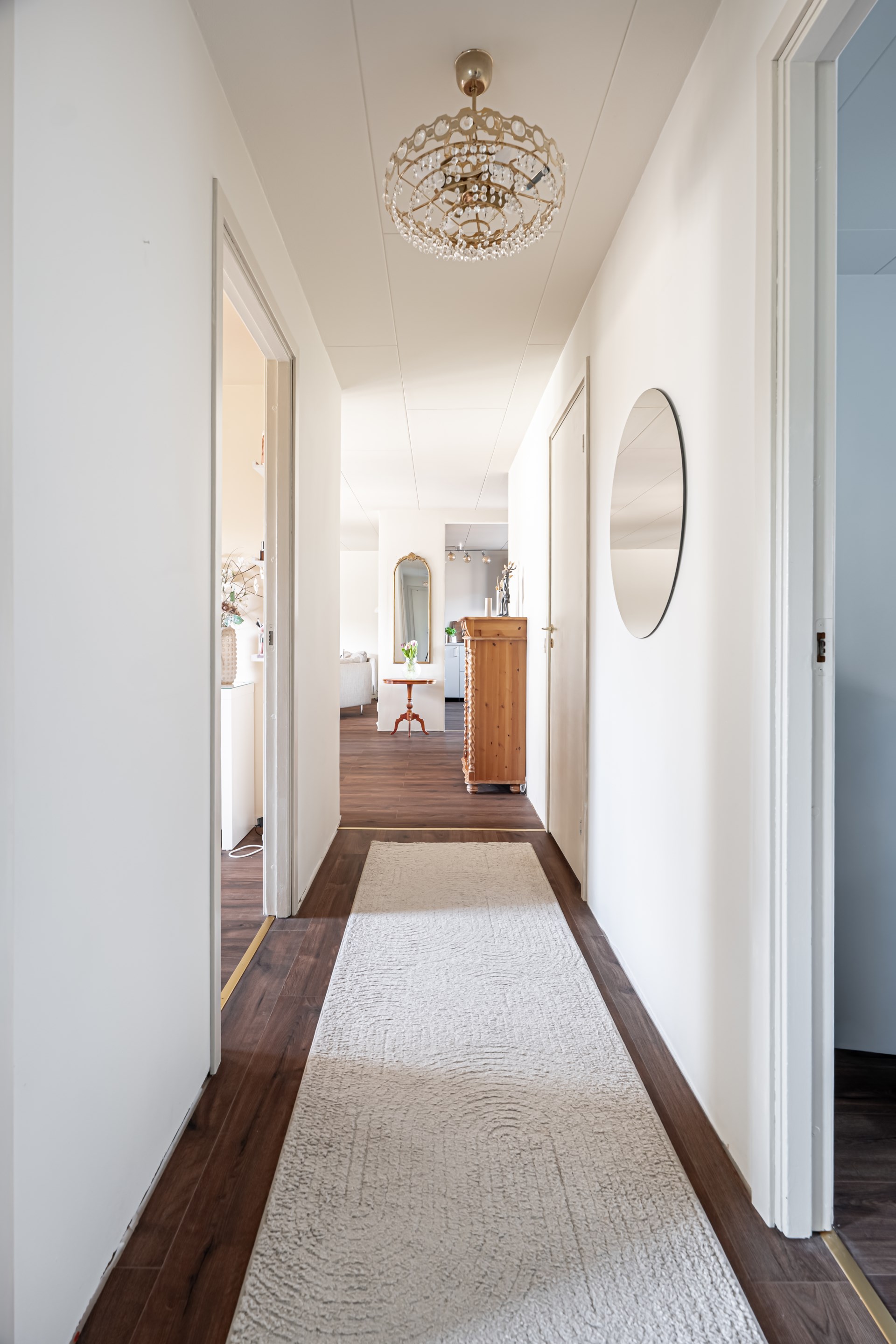 I den andra delen av bostaden, med utgångspunkt från matplatsen, finns en mer privat sovrumsdel. Här ryms flera sovrum i bra storlek, samlade på ett praktiskt sätt, samt ett badrum.
