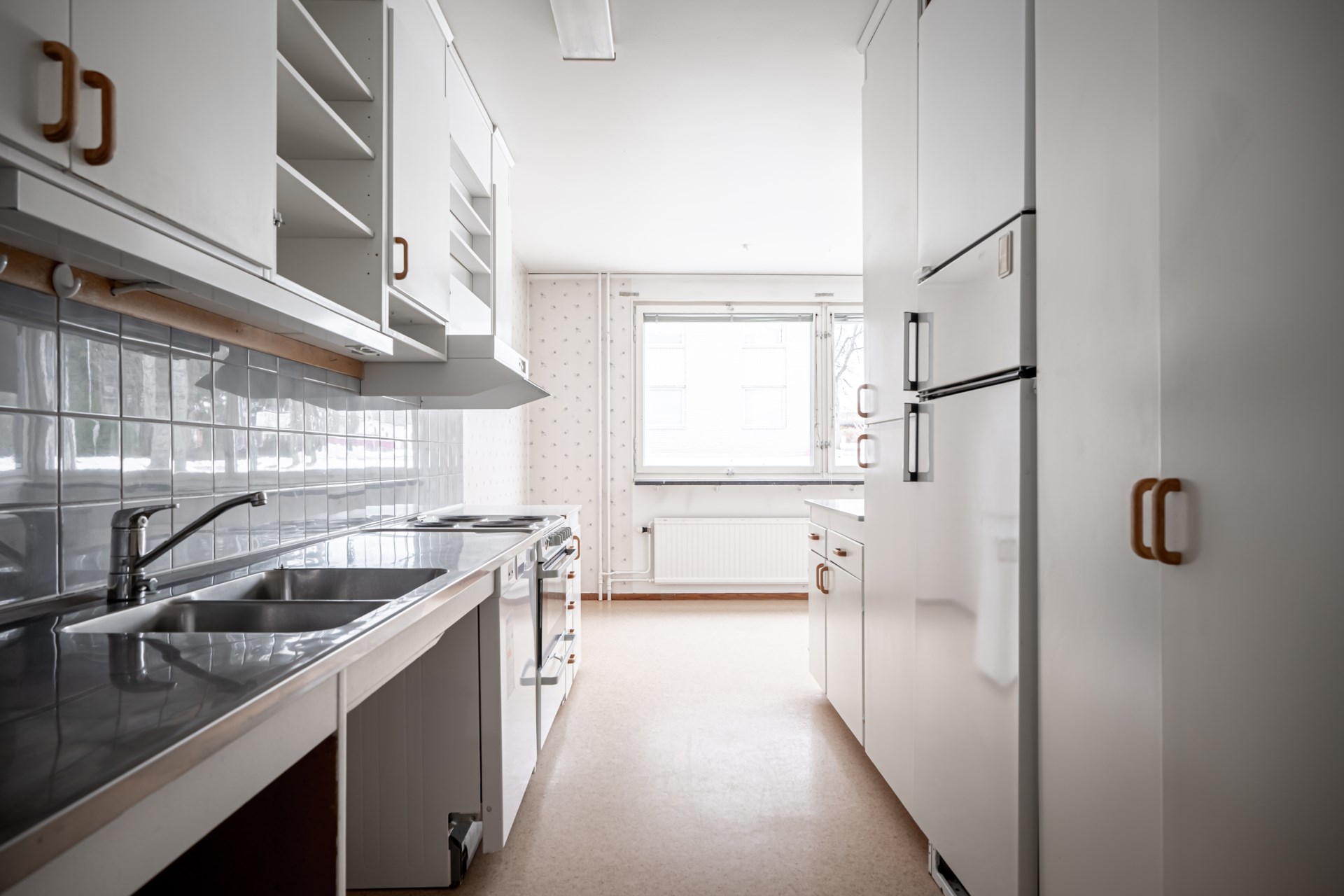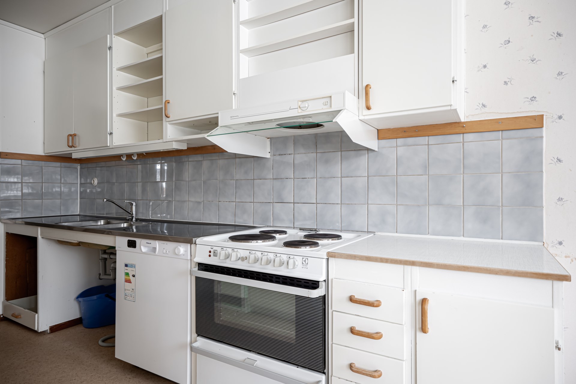 Vardagsrummet är stort och inbjudande med gott om plats för både soffgrupp och matbord, vilket skapar flexibla möjligheter att forma en trivsam social miljö. - Kök: Kök med köksinrede i vitt, köket är utrustat med spis, ugn, fläkt samt kyl/frys. I köket finns det plats för ett matbord.