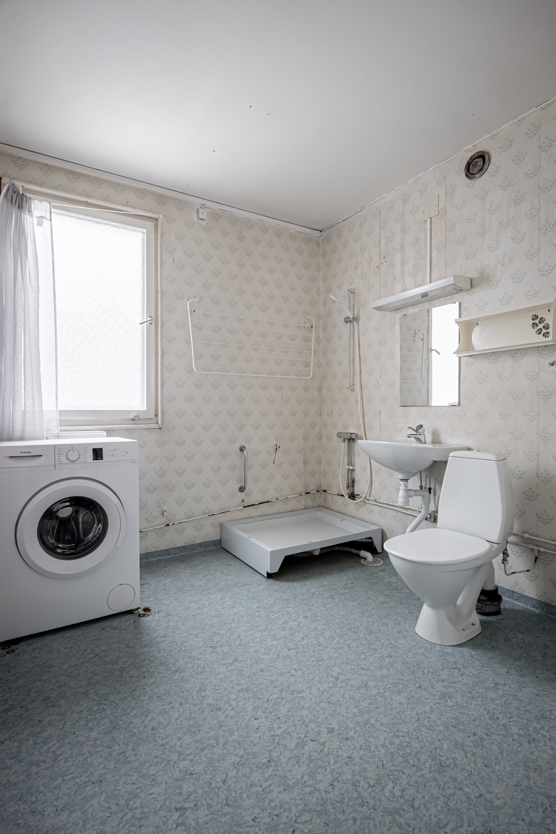 - Badrum: Badrummet har våtrumsmatta på väggar och golv. I badrummet har ni toalett, handfat, dusch och tvättmaskin.