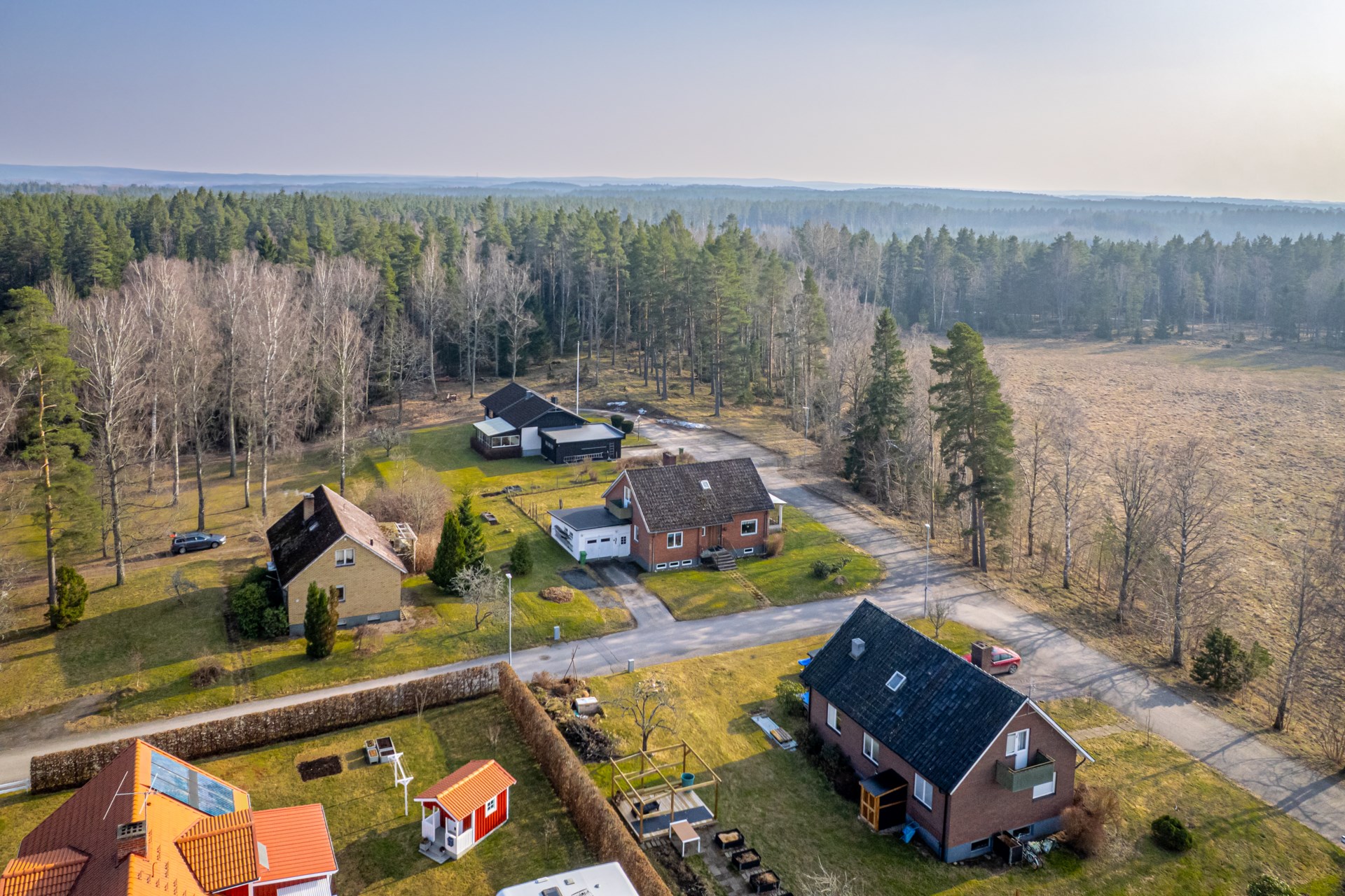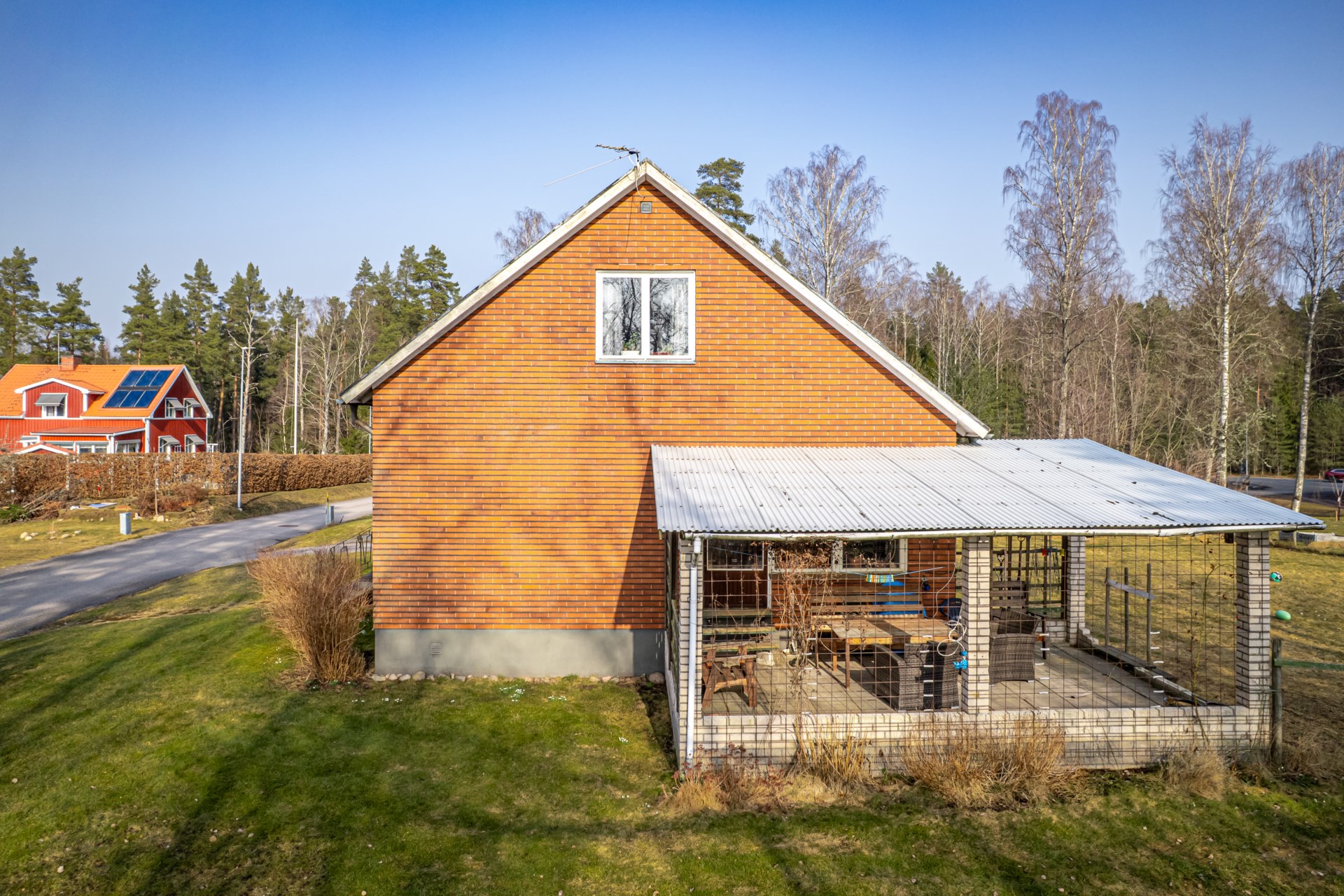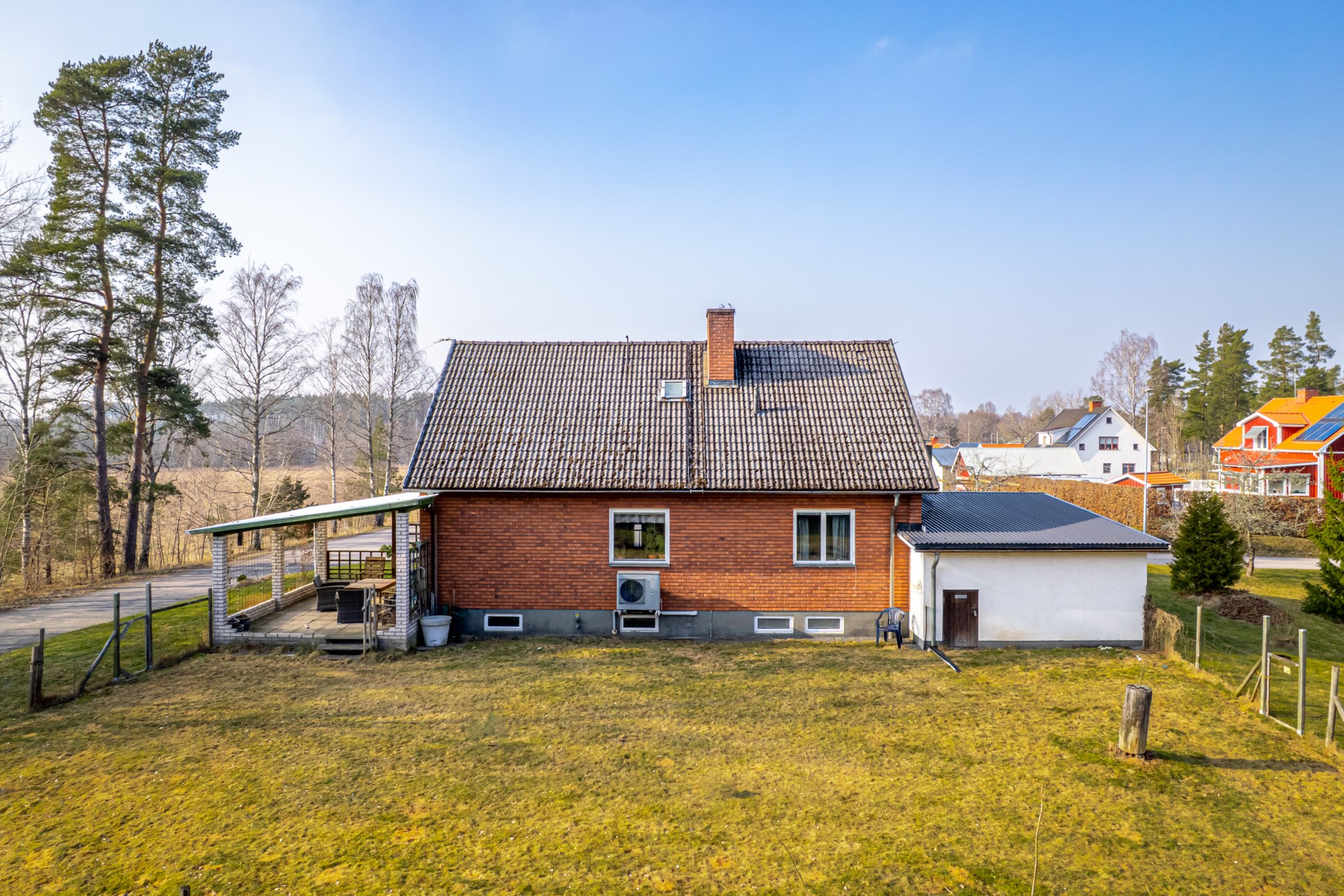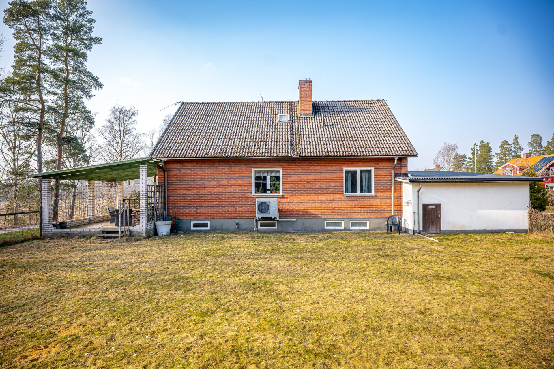 Från huset nås den trevliga uteplatsen under tak, en naturlig samlingsplats under årets varmare månader där du kan njuta av långa middagar, morgonkaffet eller bara lugnet i omgivningarna oavsett väder. Det kopplade garaget gör vardagen smidig och ger både bekväm parkering och extra förvaringsmöjligheter.