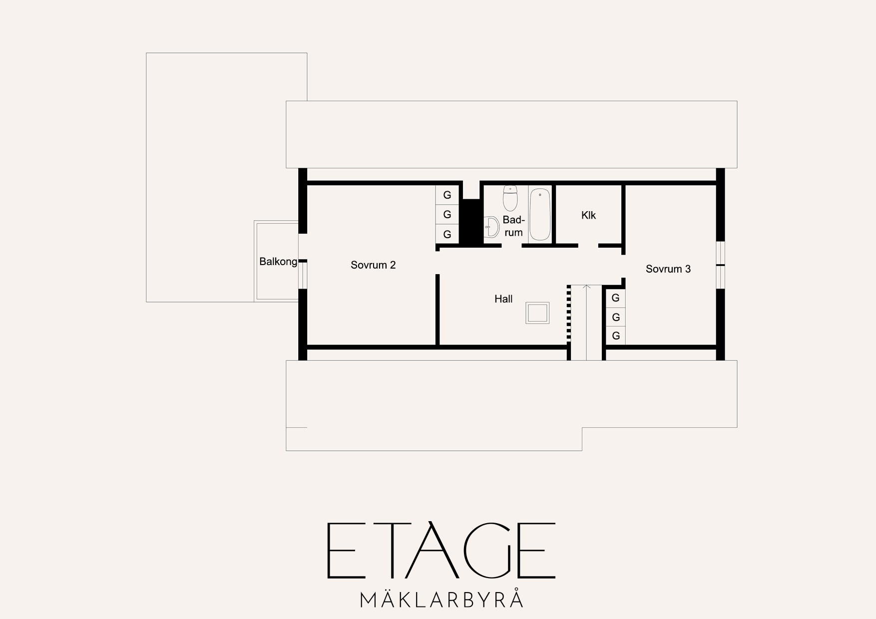 - Badrum: Badrum med kakel på väggarna och våtrumsmatta på golvet. Här inne finns en kommod, en Wc och ett badkar.